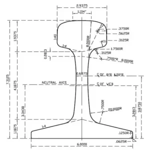 Wider Head and Base: The 74.61 mm head width better distributes wheel pressure, while the 152.4 mm (6-inch) base provides a stable foundation on sleepers (ties).